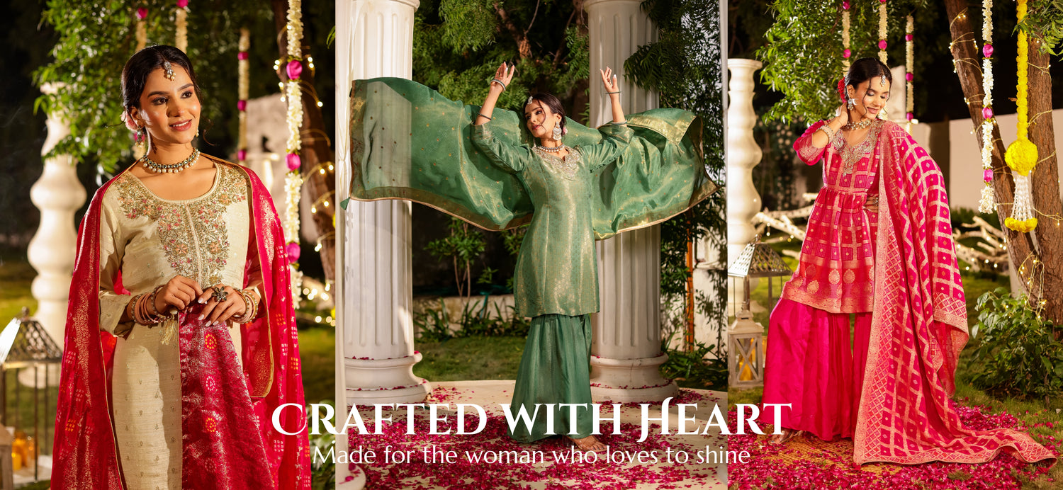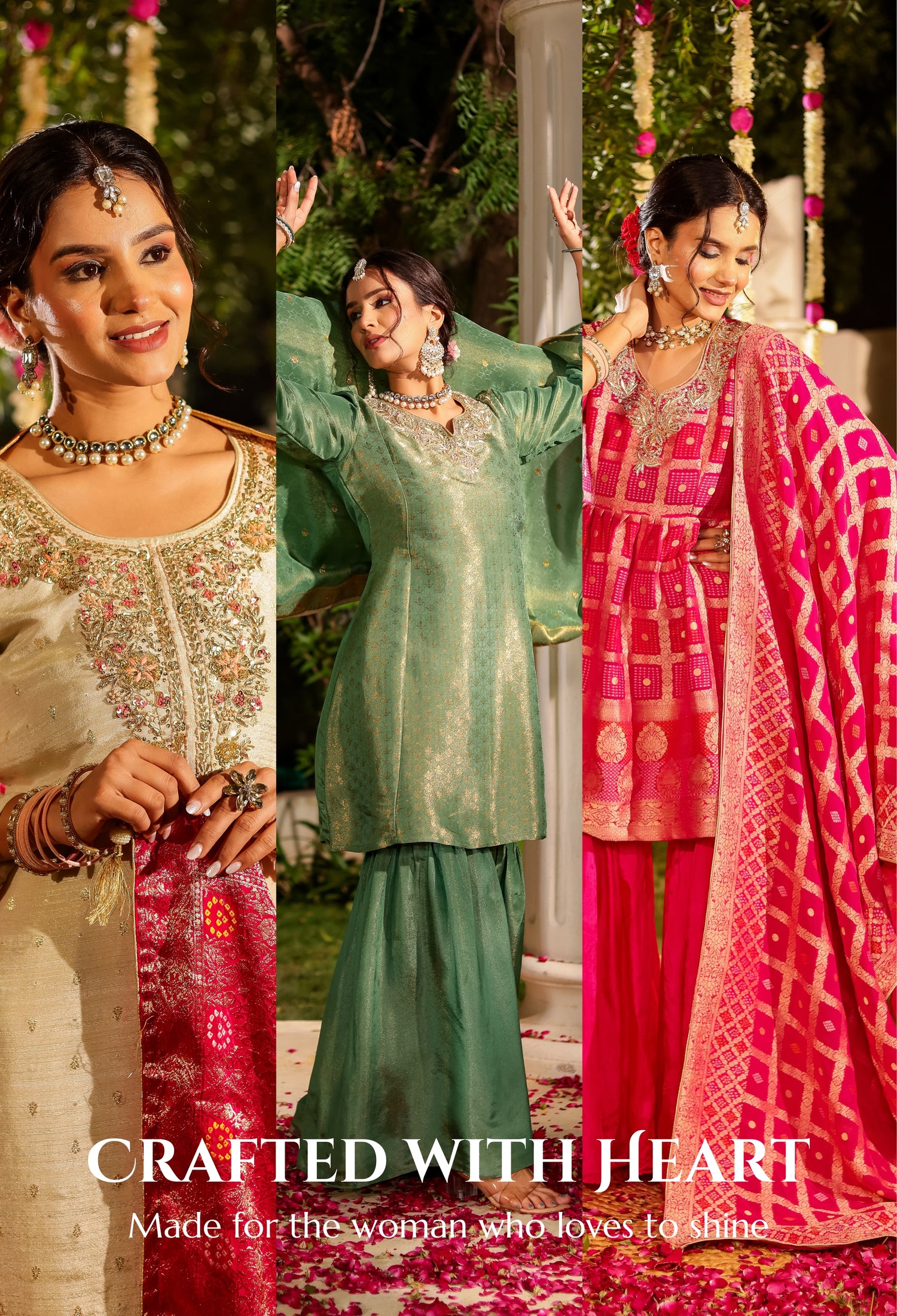 Every creation at Reet Rang celebrates heritage hues and modern elegance. Our collections capture the essence of Jaipur - regal, refined, and radiant.